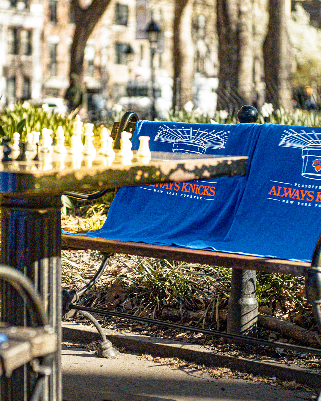 It's become common practice for teams to leave shirts on stadium seats during the playoffs. But when the Knicks are in the playoffs, the energy is so consuming that the whole city turns into one big arena. So, we put shirts on seats all over our city.